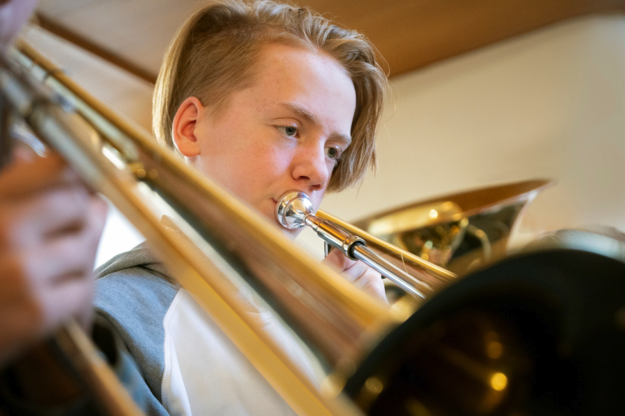 トロンボーンは合奏で中低音を担い、ハーモニーの土台を支える役割があります。初心者でも音程をしっかり合わせ、一定のリズムで安定した音を出すことを意識しましょう。メロディを演奏することもありますが、多くは他の楽器を引き立てる伴奏的な役割です。自分の音が全体の中でどのように響いているかを聴く耳を持つことが重要です。